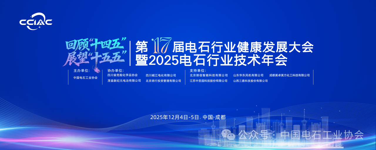 2025年12月4日至6日,由中国电石工业协会主办,四川省危险化学品协会、四川岷江电化有限公司、茂县新纪元电冶有限公司、北京明行投资管理有限公司共同协办的“第十七届电石行业健康发展大会暨2025电石行业技术年会”在成都成功召开。会议汇聚了行业主管部门、协会组织、领军企业、科研院所及产业链相关机构的领导、专家与代表共计300余人,围绕“回顾‘十四五’成就、谋划‘十五五’路径”的核心主题,深入探讨技术创新、绿色转型与智能升级,为电石行业未来高质量发展凝聚智慧、明确方向。