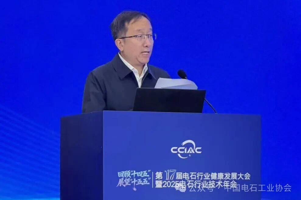 中国电石工业协会理事长鲁卫东首先致欢迎辞。他系统回顾了“十四五”期间电石行业在能效提升、节能减排、智能化改造及绿色工厂建设等方面取得的实质性进展,指出全行业正朝着高效、清洁的发展方向稳步迈进。展望“十五五”,他强调,行业需进一步凝聚战略共识,坚持以科技创新为核心驱动力,加速绿色低碳转型进程,围绕碳达峰目标开展关键技术攻关,并通过深化产业链协同,共同构建清洁低碳、安全高效的现代电石产业体系。