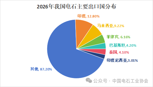 我国电石主要出口国家为印度(0.53万吨,12.8%),马来西亚(0.38万吨,9.22%),菲律宾(0.26万吨,6.16%),巴基斯坦(0.18万吨,4.2%),泰国(0.17万吨,4.1%),印度尼西亚(0.13万吨,3.31%)。